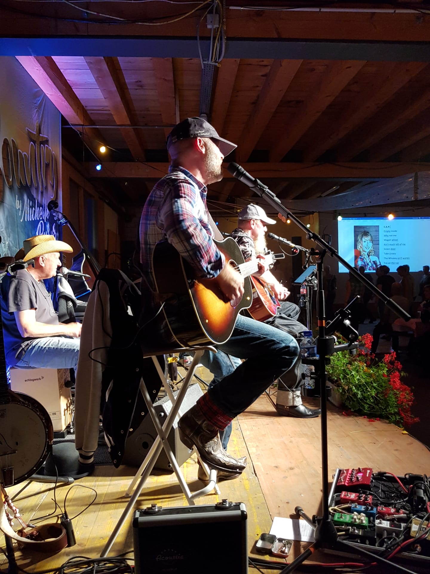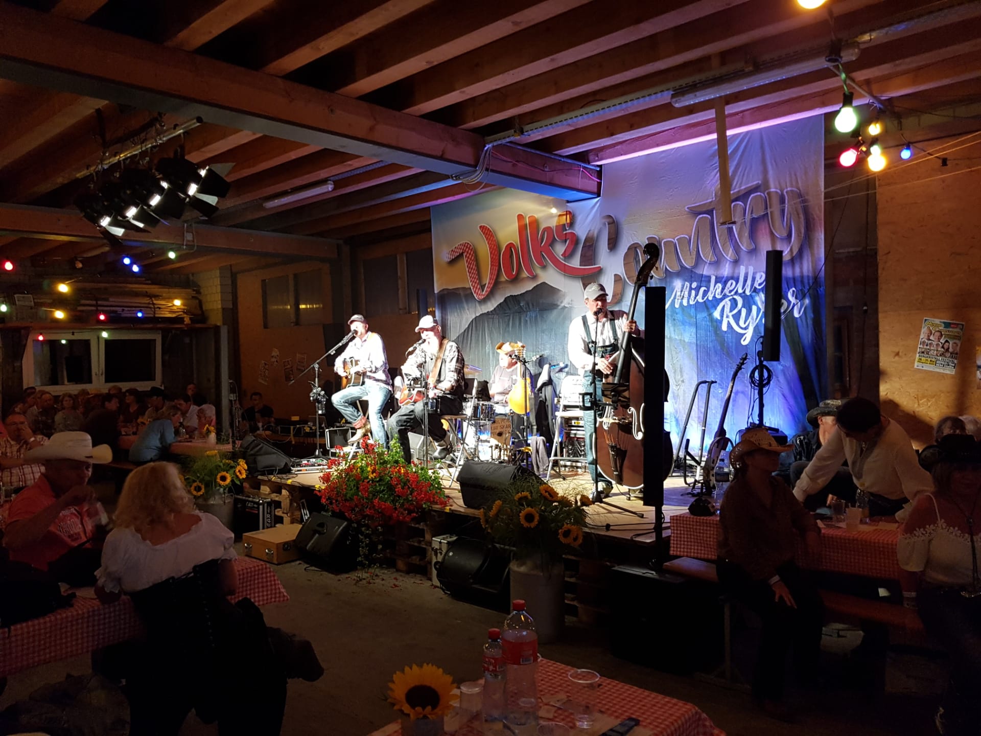 „We d’Sunne hinger em Jura ungergeit“ bedeutet für uns als Band aus der Region Solothurn, dass die feurige Kugel vor der Abenddämmerung irgendwo zwischen Weissenstein und Grenchenberg verschwindet. Um dieses Phänomen mal genauer zu untersuchen und natürlich aus ein paar anderen Gründen waren wir am Samstag, 24. August 2019, eben auf jenem Hausberg, der zu Solothurn gehört wie das Stimmgerät in den Gitarrenkoffer. Wir sind der Einladung von Michelle Ryser gefolgt und quasi in den vielbesungenen Sonnenuntergang geritten, um am zweiten Tag der Volkscountry-Wagenschopf-Party nach unerträglich langen 13 Monaten wieder eine grosse Bühne zu besteigen. Und das vor ausverkauftem Haus!