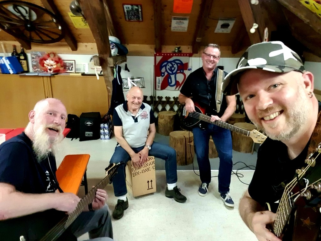 Aber wenn wir schon bei den vier Buben von C.A.P. sind: Im Hintergrund mag der geneigte Architekturliebhaber nicht nur unser wunderschönes neues Probelokal erspähen, sondern im Vordergrund vor allem unseren neuen Mann am Bass: HERZLICH WILLKOMMEN KARI!