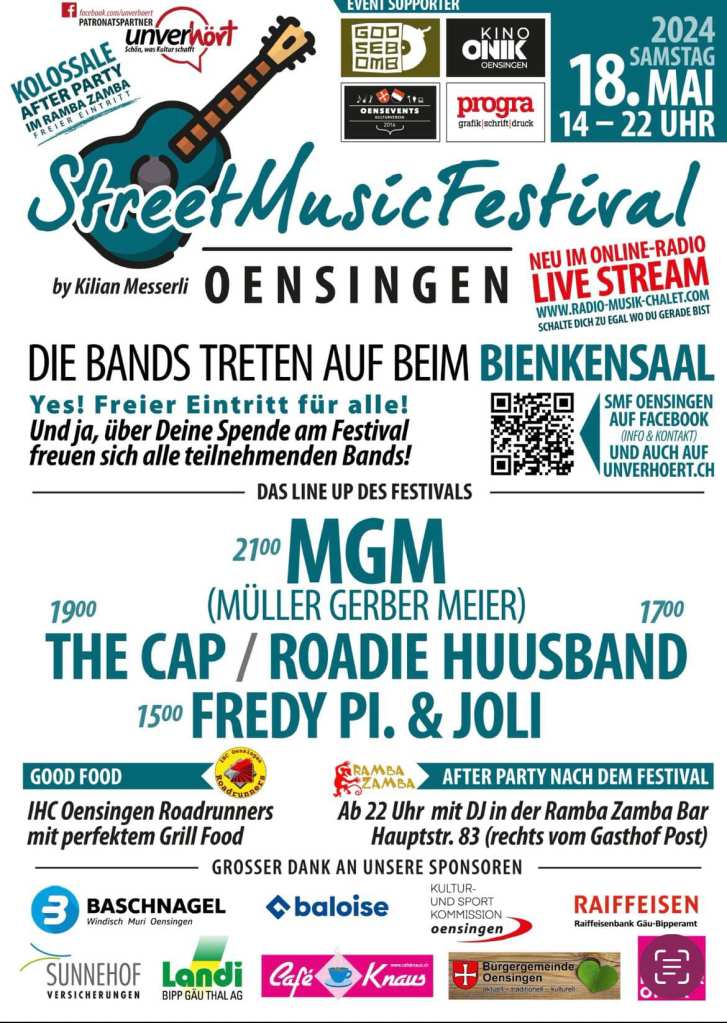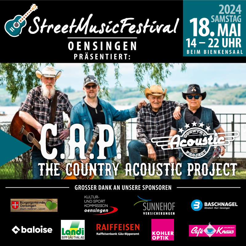 Neben zahlreichen privaten Anlässen sind wir auch dieses Jahr wieder am StreetMusicFestival in Oensingen dabei, und dies als einziger Act bereits zum vierten Mal. Wir könnten uns ob solcher Fakten jetzt über den Unterschied zwischen Ausdauer und Einfallslosigkeit ausbreiten, ziehen es aber vor, nur den kleinen Hinweis und die Hingeh-Empfehlung hier zu hinterlassen: Um 19:00 Uhr geht’s los mit C.A.P., wie immer direkt vor dem Bienkensaal. See you there!