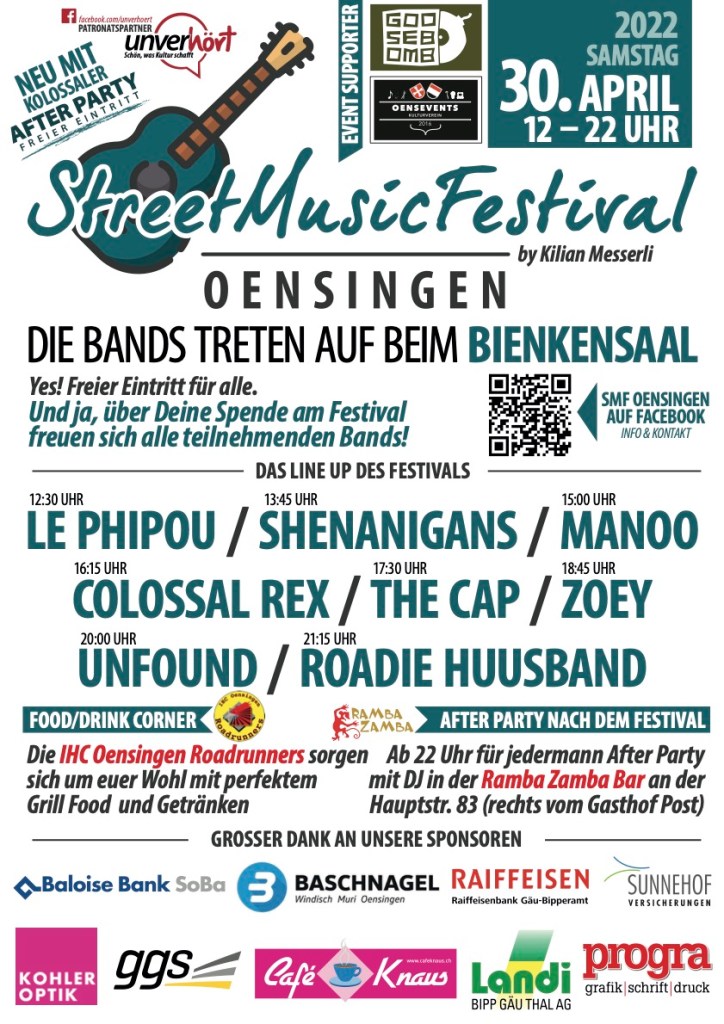 Neben zahlreichen privaten Anlässen sind wir auch dieses Jahr wieder am StreetMusicFestival in Oensingen dabei, und dies als einziger Act bereits zum vierten Mal. Wir könnten uns ob solcher Fakten jetzt über den Unterschied zwischen Ausdauer und Einfallslosigkeit ausbreiten, ziehen es aber vor, nur den kleinen Hinweis und die Hingeh-Empfehlung hier zu hinterlassen: Um 19:00 Uhr geht’s los mit C.A.P., wie immer direkt vor dem Bienkensaal. See you there!