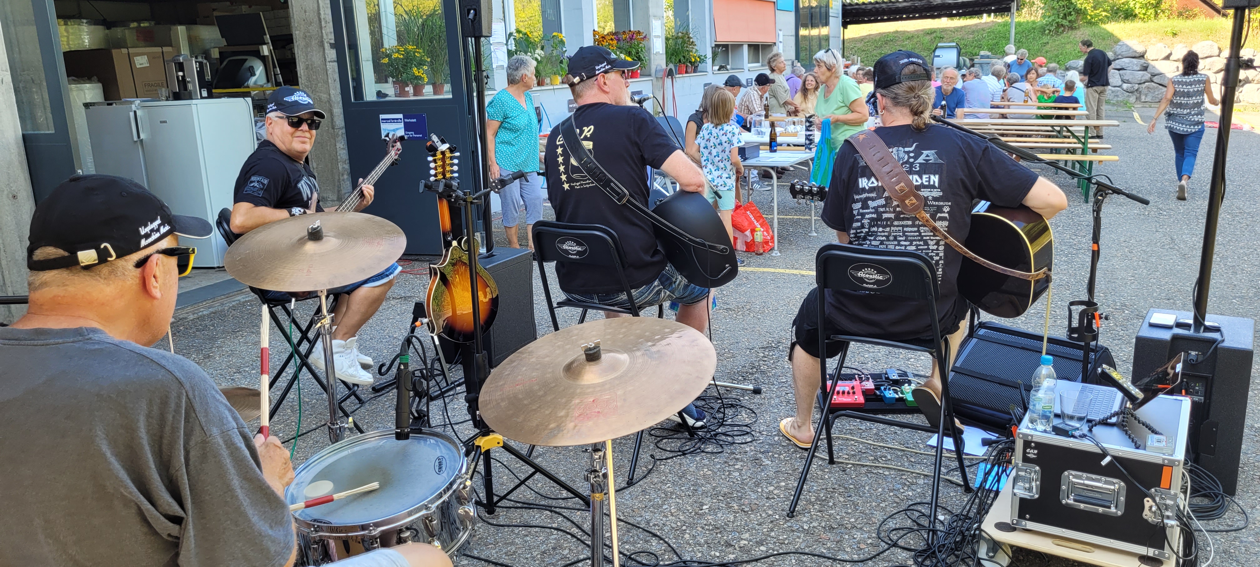 Löcher gibt’s ja bekanntlich viele. Für uns speziell relevant sind natürlich das Klangloch im Saiteninstrument, das Loch im Portemonnaie und aktuell das Sommerloch. Allerdings haben wir am Samstag, 19. August 2023, endlich wieder heraus gefunden aus der Sommerpause und hatten quasi einen Aufwärm-Gig am Quartierfest Löchligut in Bern. Obwohl das mit dem Aufwärmen bei den gegenwärtigen Temperaturen jenseits der 30-Grad-Marke kaum im thermischen Sinn notwendig ist.