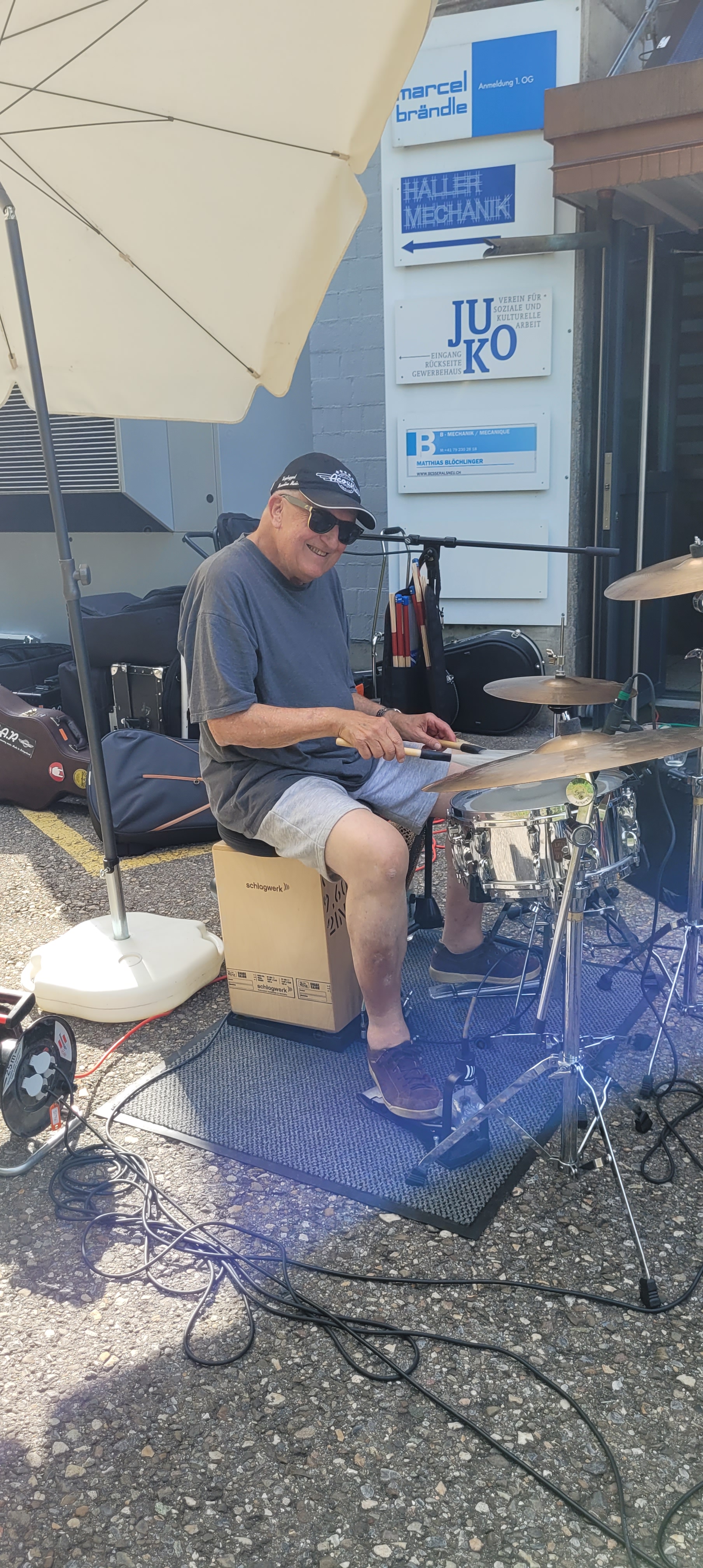 Nachdem wir am 22. April 2023 im Restaurant Ranch in Orpund vor komplett ausverkauftem Haus spielen durften, gestaltete sich die Lage am vergangenen Wochenende rein quantitativ nicht ganz so überbucht. Am StreetMusicFestival Oensingen hätten wir am 29. April durchaus noch Platz für 100 zusätzliche Zuschauerinnen, Tänzer oder Party-Freunde gehabt. Es war ja nun nicht so, dass das Festival schlecht besucht war, aber die Bise, die zwischendurch punktuell drohenden Platzregen und die allgemein noch nicht ganz sommerlichen Temperaturen hatten das Ihrige sicher beigetragen.